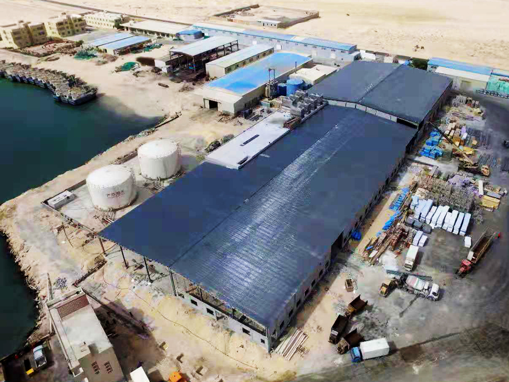 Project Description: This project processes frozen fish strips with a daily output of 300 tons. It is equipped with a 3.5 ton/hour sliding spiral quick freezer (with a defrost unit) and 32 flat rack freezers (each with a 1.5 ton/4 hour output). Three low-temperature cold storage rooms are also provided, with a total storage capacity of 4,500 tons. The client's 1,060 square meter workshop is also equipped with air conditioning and a seawater cooling system.