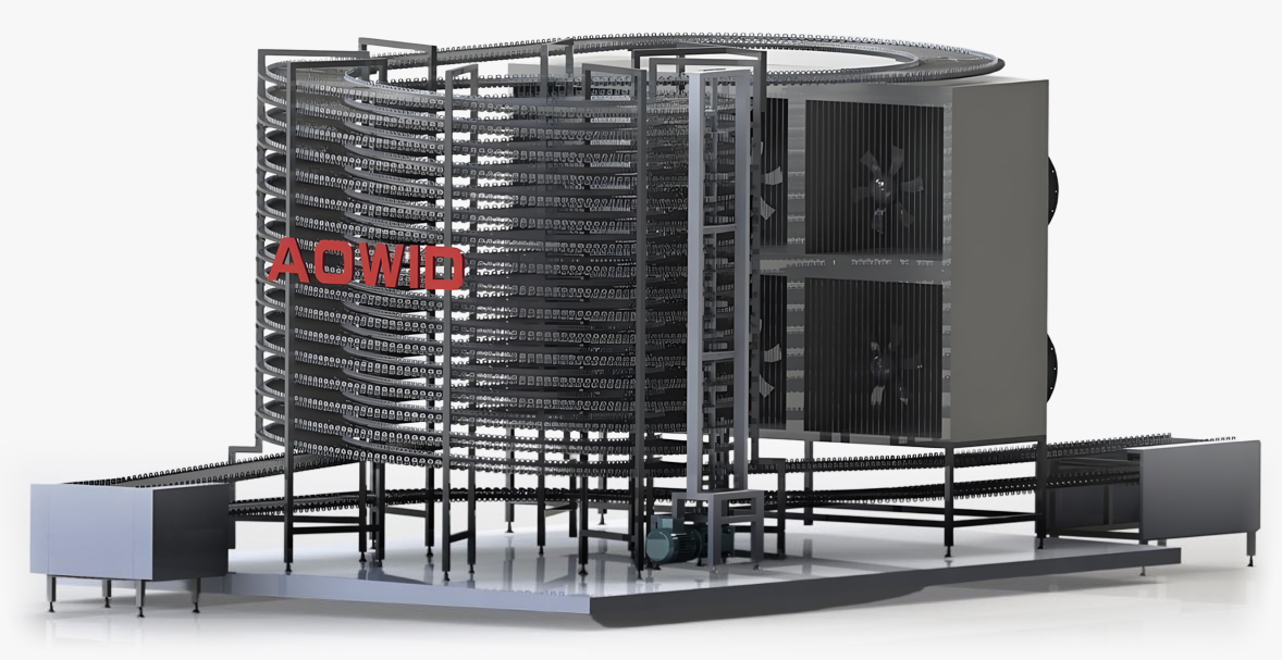 ● It is also a kind of advanced and efficient air-cooling system, which is used widely in many industries, especially in food processing field. It cools down the products (like bakery products from oven or French fries from frying machine) by room temperature air (sometimes adopt circulating fans).